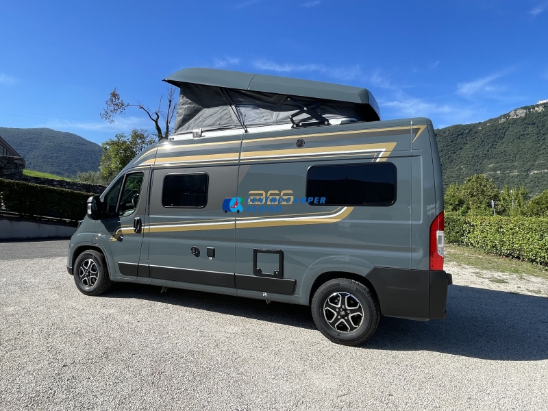 Camper van puro furgonato 5,99 mt con 4 posti letto e 4 posti viaggio omologati (doppio letto matrimoniale: letto matrimoniale trasversale posteriore e letto matrimoniale nel tetto a soffietto pop-up) e con CAMBIO AUTOMATICO!