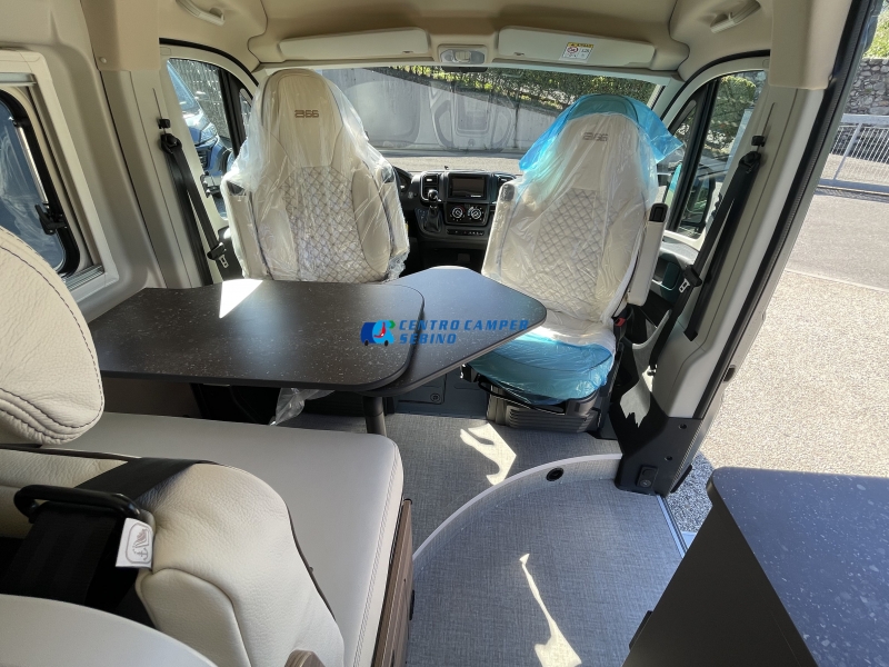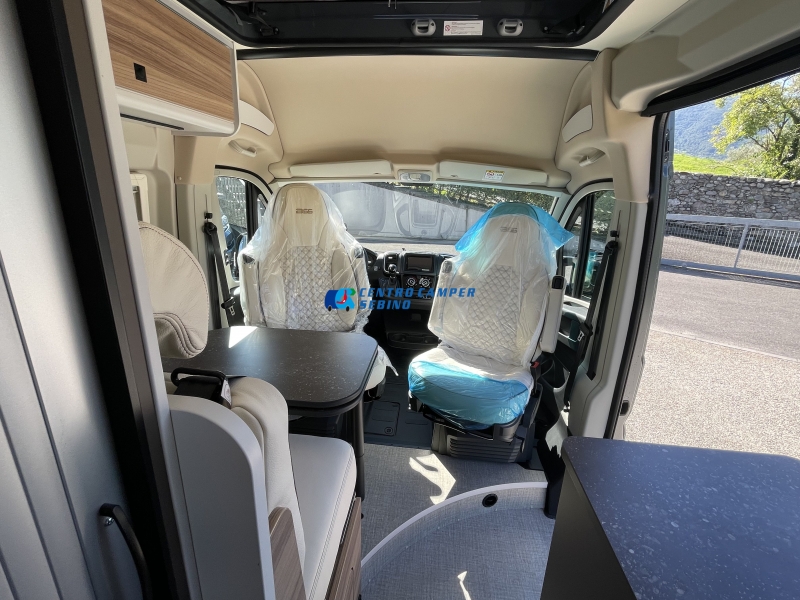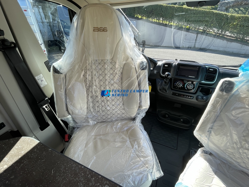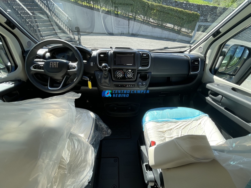 - Sedili cabina girevoli, regolabili e con tappezzeria coordinata alla cellula