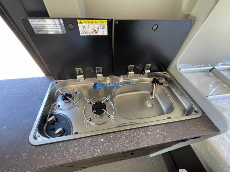 - Cucina con piano cottura a 2 fornelli, lavandino e copertura di vetro separati, cassetti con chiusura soft-close