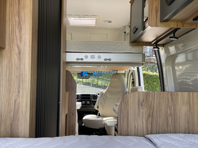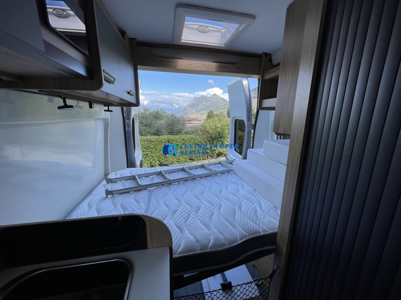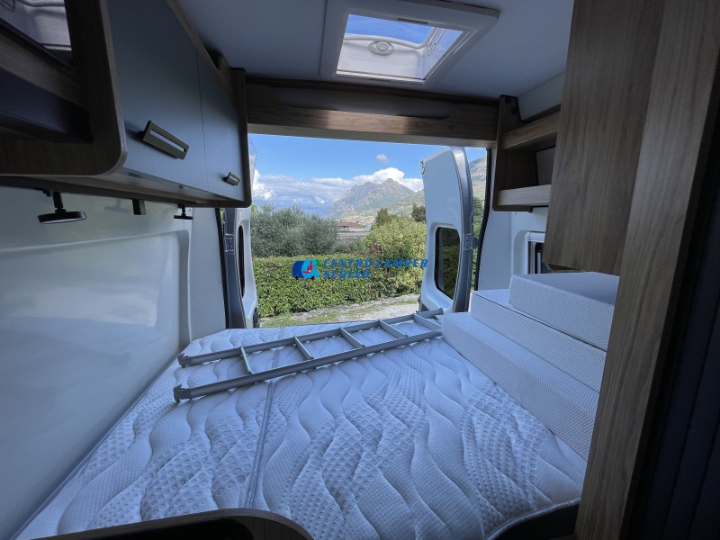 - Letto matrimoniale basculante elettrico anteriore, dimensioni: 197 x 132 cm c.a.