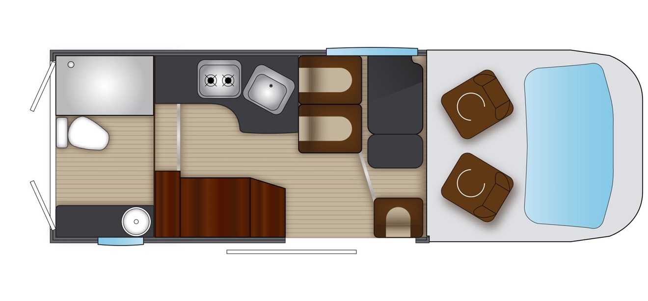 Toilette trasversale in coda estremamente vivibile, con doccia separata
